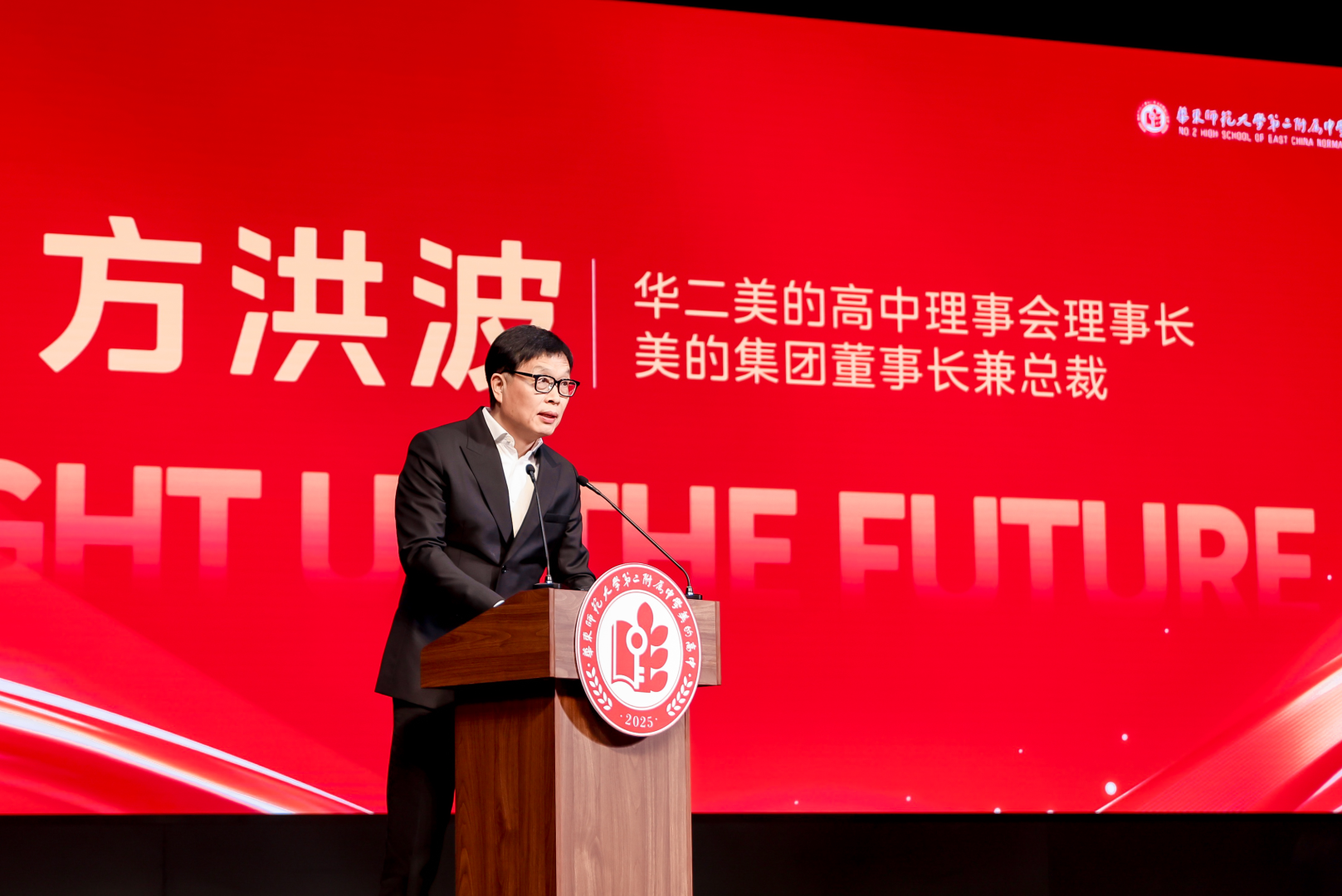 美的集团董事长兼总裁方洪波对政府在教育发展上的持续投入,华东师大长期以来的支持,以及华二美的高中团队的辛勤付出表达了衷心感谢,表示“对于学校未来的建设和发展,美的集团会保持持续关注和积极投入,会不遗余力给予全方位的支持,对学校的教育水平和结果充满期待。”
