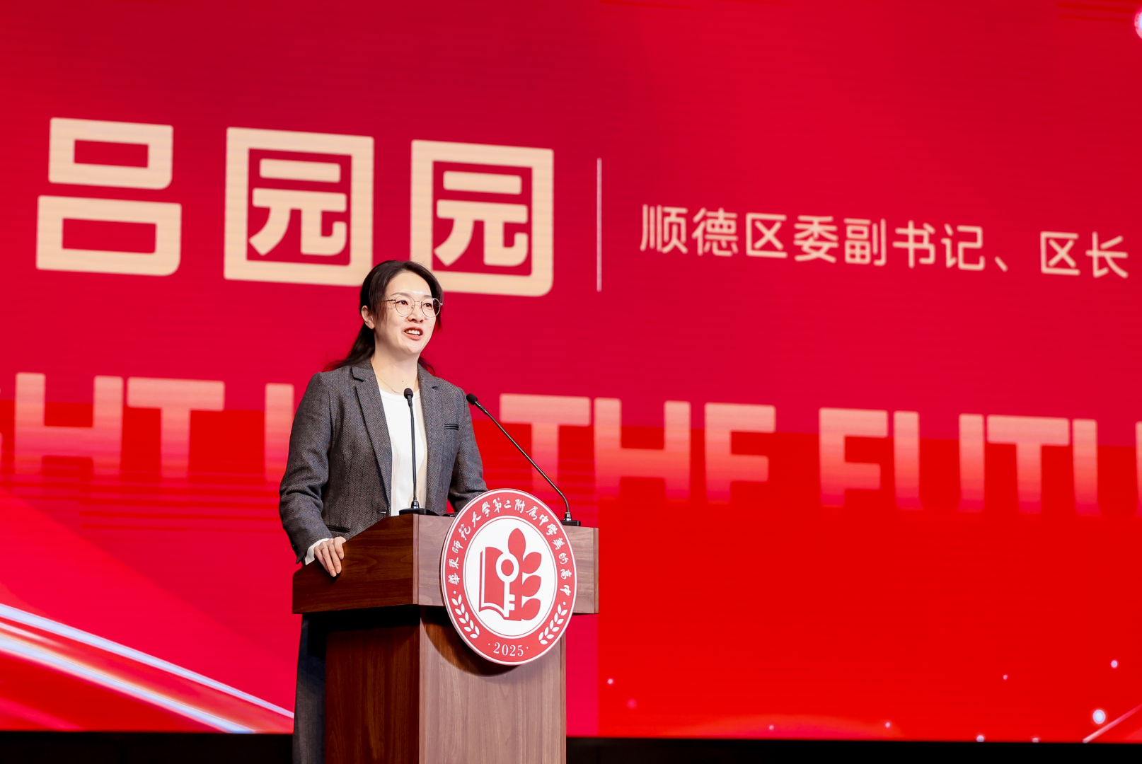 顺德区委副书记、区长吕园园致辞时表示“这是华东师范大学第二附属中学优质品牌首次落地广东,它既是名企、名校、强区合作的标杆示范,更是顺德吸引人才、留住人才的重要载体。”她还进一步强调“未来将持续加大教育投入,优化资源配置,全面提升办学品质,让企业在顺德发展更加安心,让人才在顺德扎根更加暖心。”