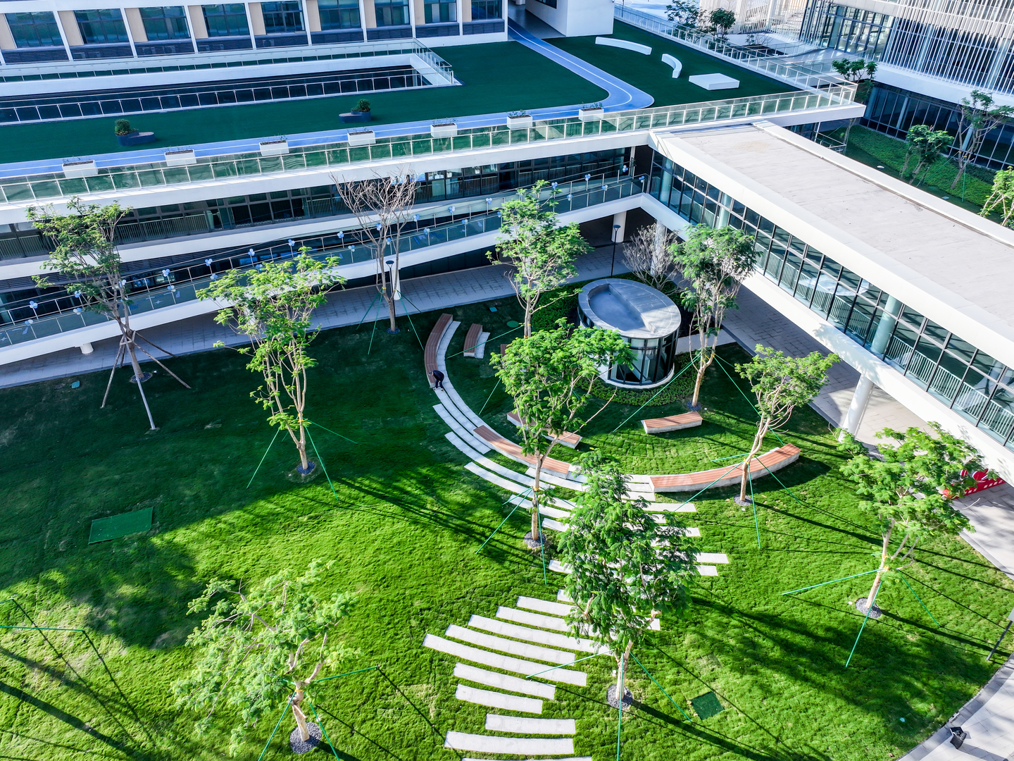 学校位于佛山市顺德区北滘镇,占地面积127亩,总建筑面积95500㎡,涵盖3栋教学楼、1栋艺体中心(包含室内体育馆、50米标准泳池、千人音乐厅等)、学生宿舍、餐厅及教师公寓等8座主体建筑以及室外标准化运动场。